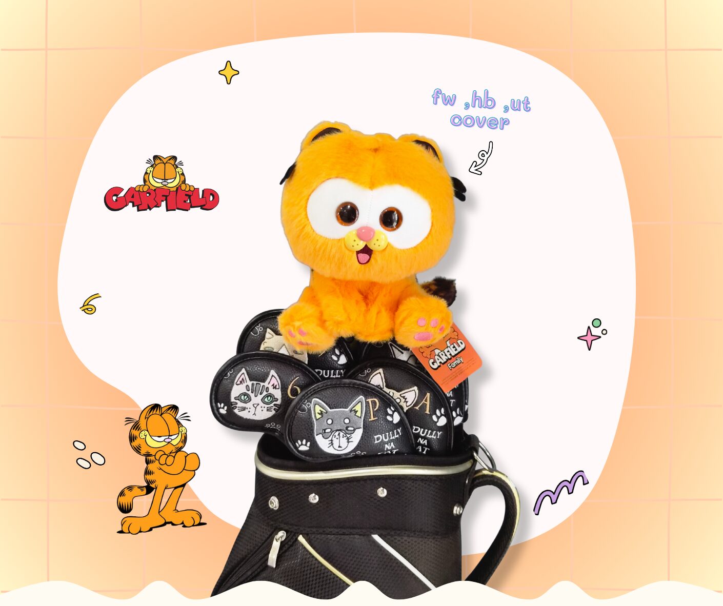 Headcover การ์ฟิลด์ (Garfield) แมวส้มจอมกวน – ลิขสิทธิ์แท้ สำหรับ Fairway, Hybrid, Ut cover