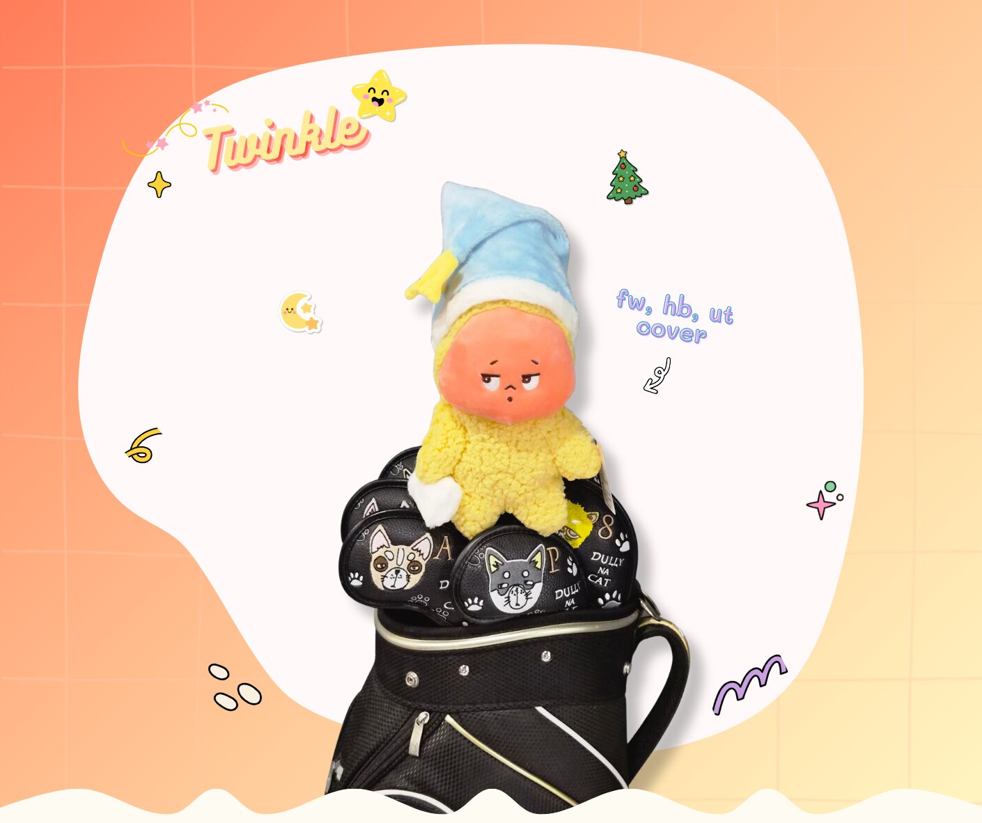 Headcover น้องทวิงเกิล (Twinkle) หัวแหลม สีเหลือง – งานแฟชั่น ตุ๊กตาแฟนซี สำหรับ Fairway, Hybrid, Ut cover