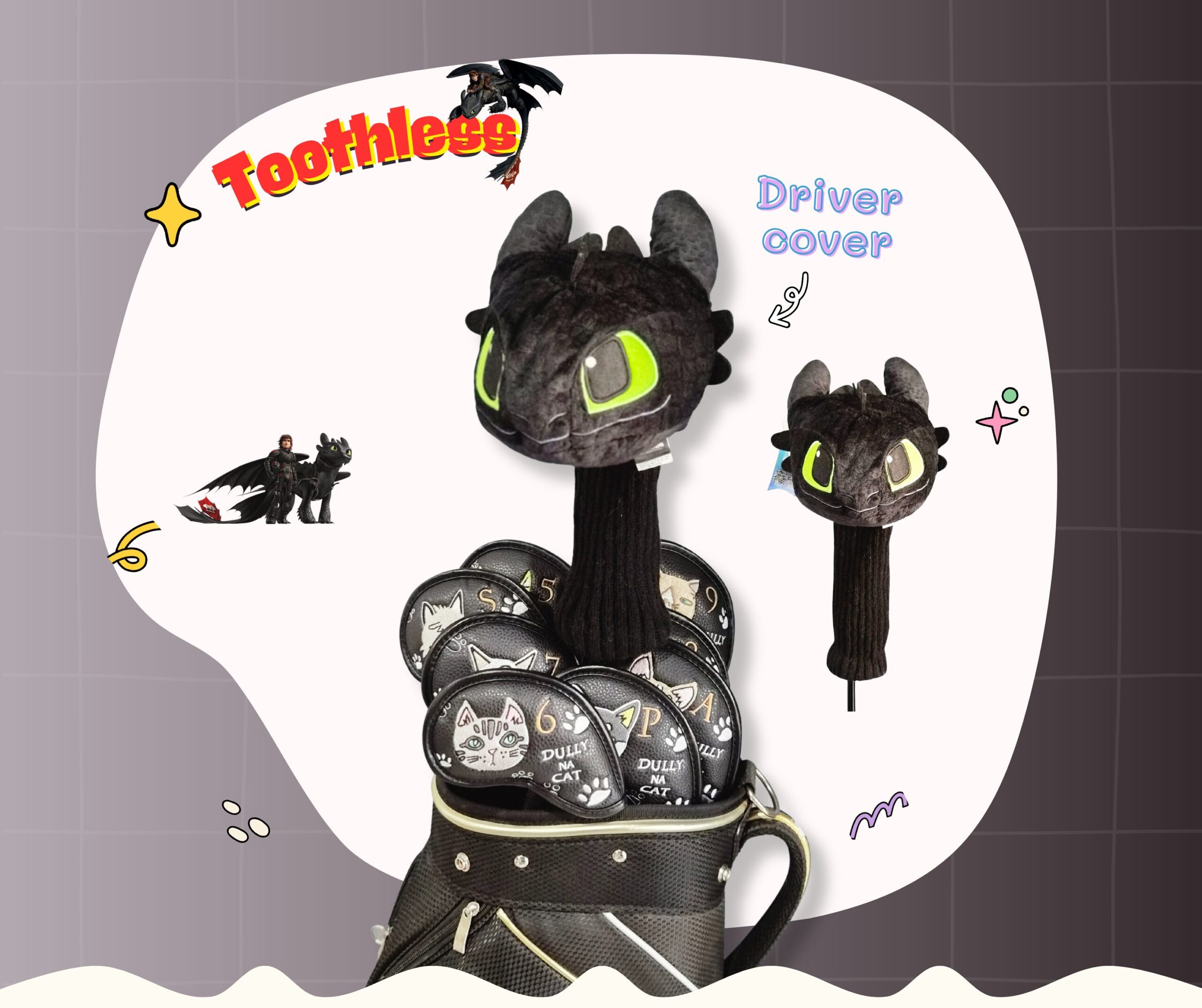 Headcover มังกรเขี้ยวกุด (Toothless) สีดำ – ลิขสิทธิ์แท้ สำหรับ Driver cover 460cc