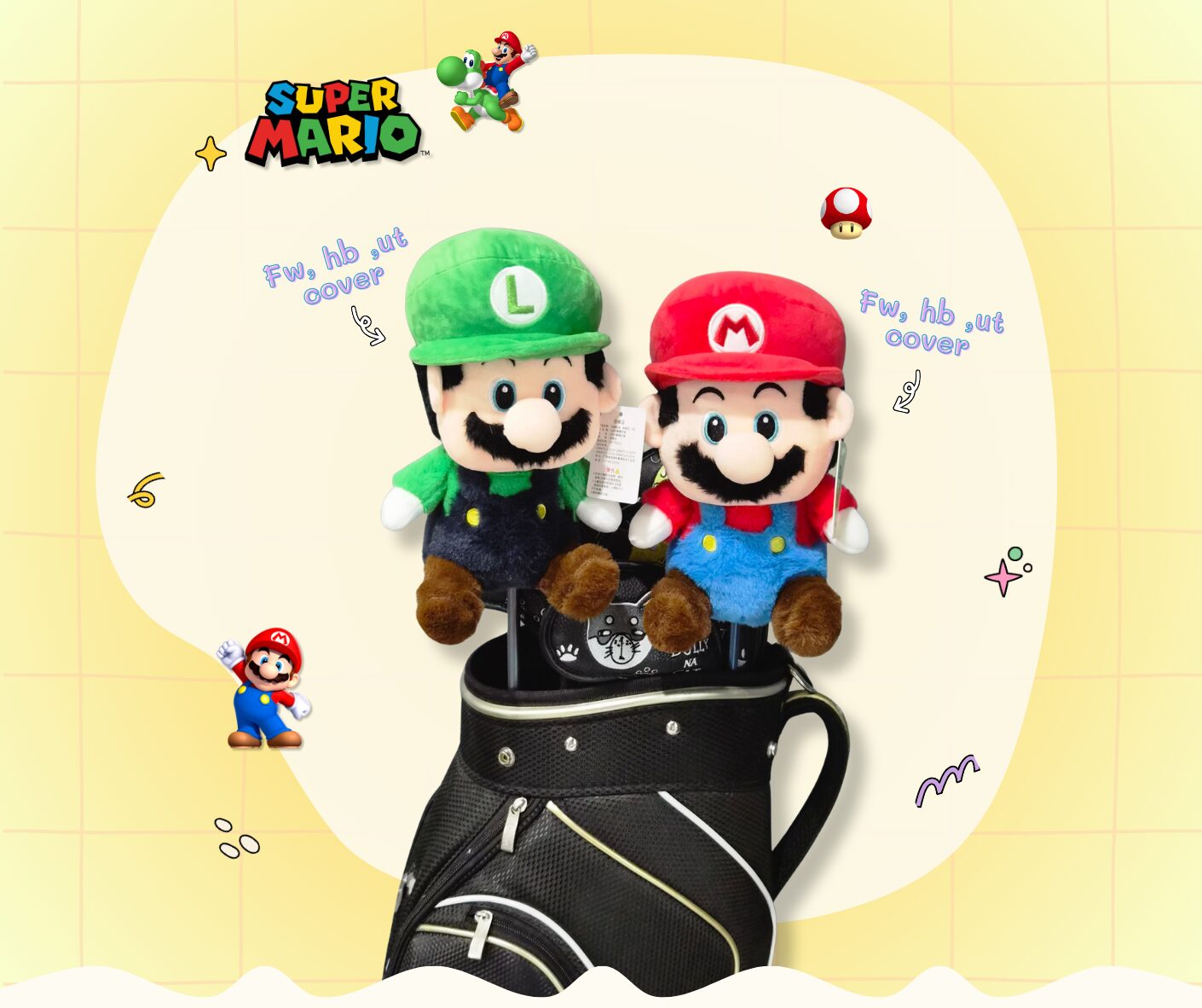 Headcover มาริโอ้ (Mario) – งานแฟชั่น Super Mario Bros สำหรับ Fairway, Hybrid, Ut cover