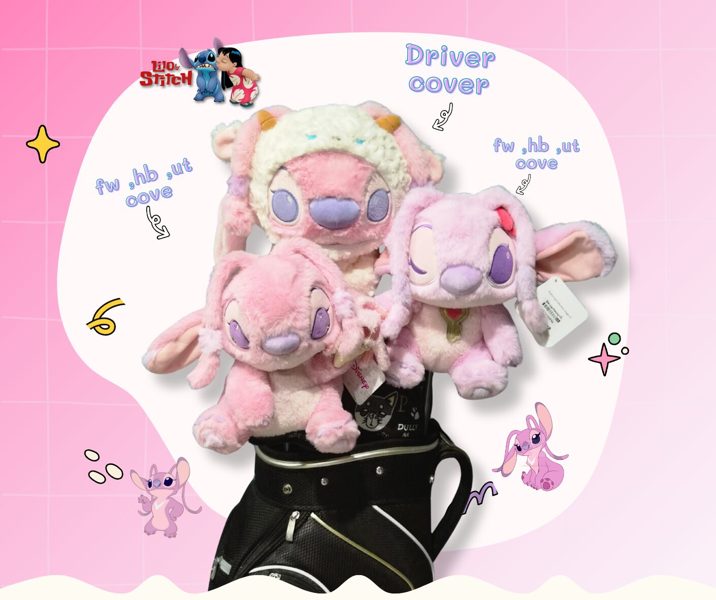 Set Headcover แองเจิ้ล (Angel) สีชมพู – หวานใจสติทช์ ลิขสิทธิ์แท้ สำหรับ Driver, Fairway, Hybrid, Ut cover